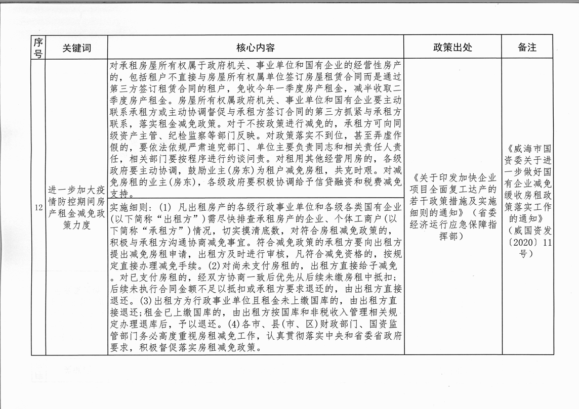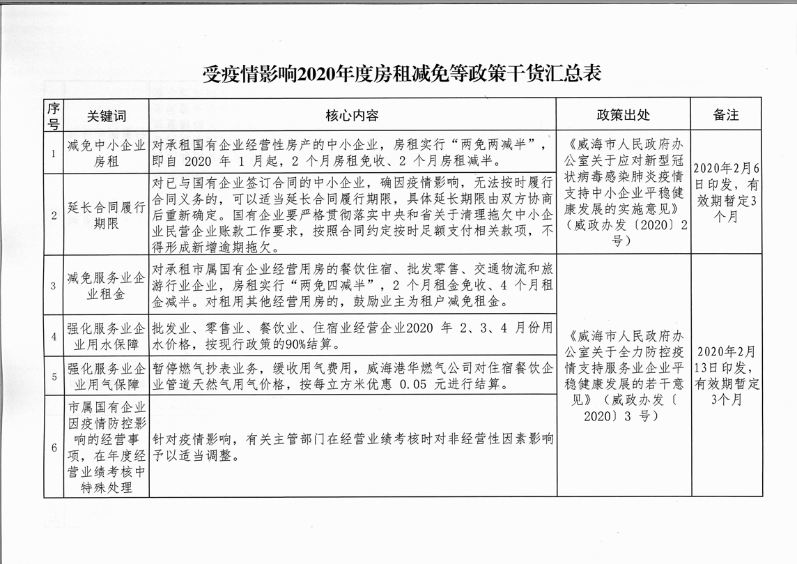 為全面落實“六穩(wěn)”、“六?!比蝿?,進一步推動國有企業(yè)房租減免政策落地落實,現(xiàn)將《受疫情影響2020年度房租減免等政策干貨匯總表》及監(jiān)督投訴電話予以公告。
