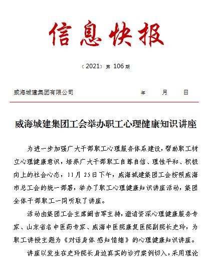 威海城建集團(tuán)工會(huì)舉辦職工心理健康知識(shí)講座